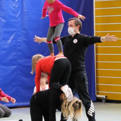 Acrobatie: acrobaties au sol, portés/pyramides.